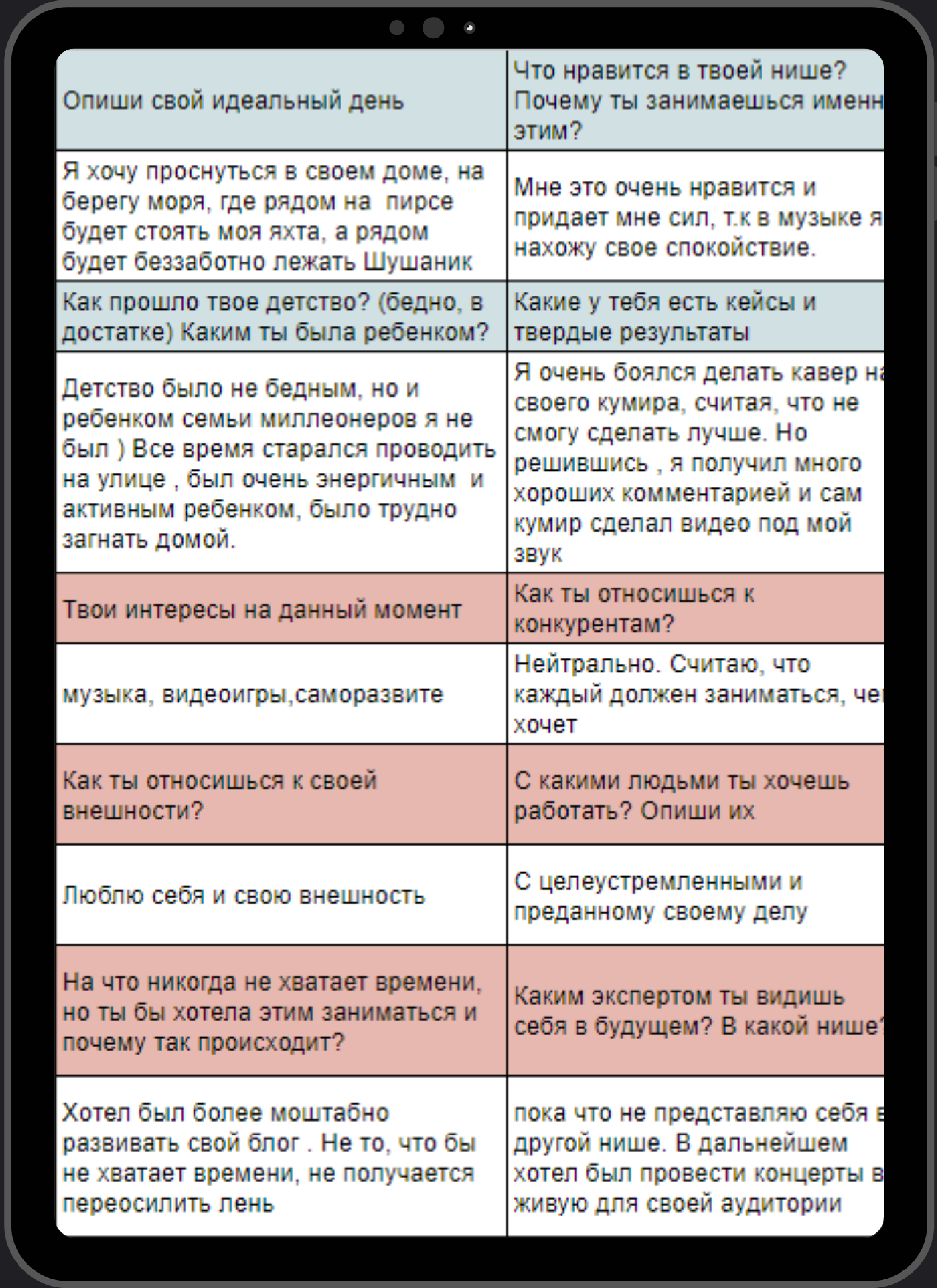 - распаковка личности/контент-план